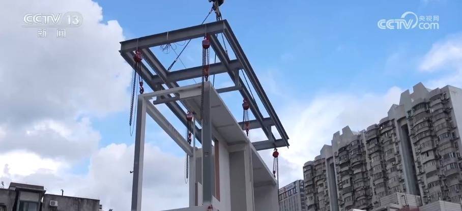 在三里河一区28号楼名目现场,这栋楼的改建如同“搭积木”一样,重型塔吊把一个模块吊装到预定的位置,不到半小时就完成了功课。而在名目不远方的路旁,还有4、5个模块照旧运载到位恭候吊装。