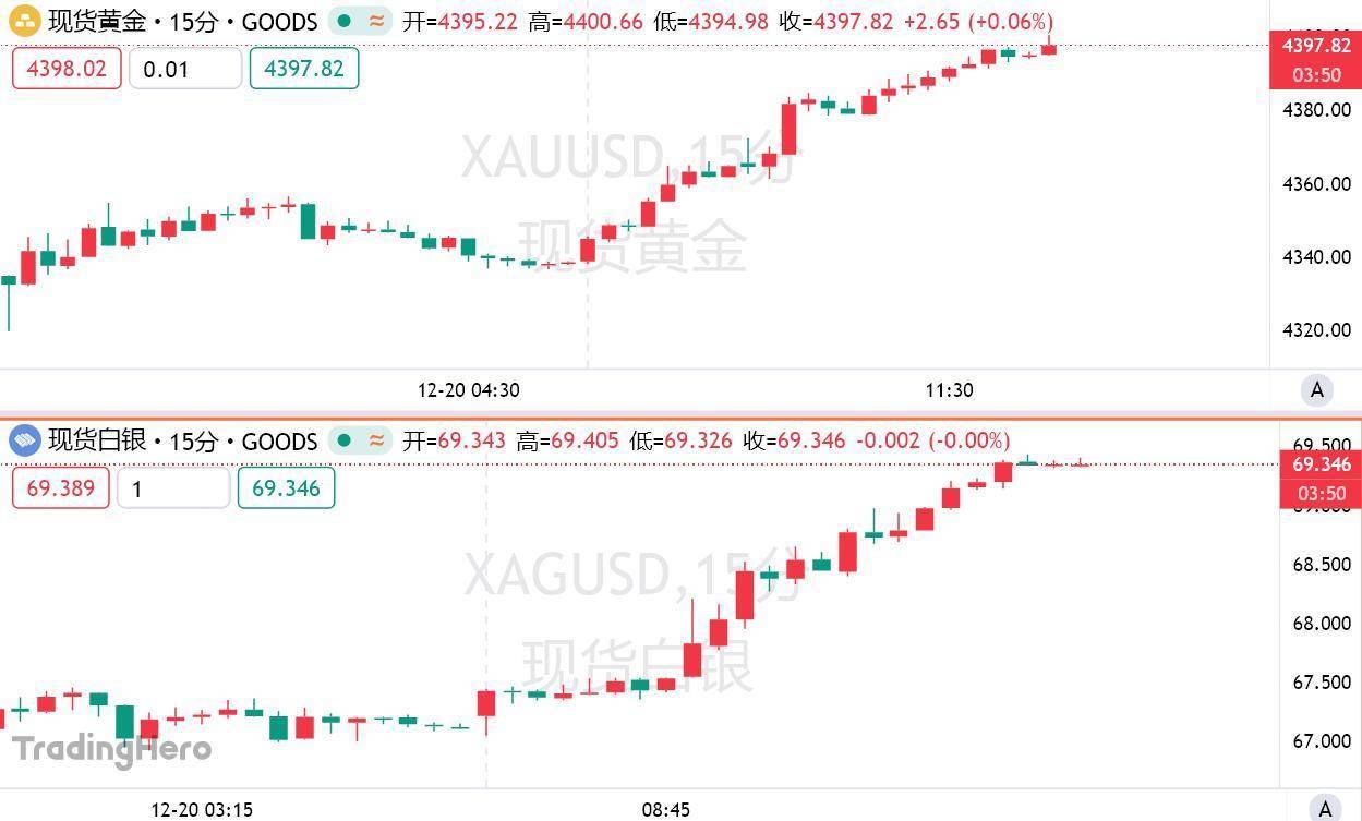 受地缘政事垂死局面恶化和阛阓对好意思联储来岁将进一步降息的预期激动,周一,黄金、白银价钱双双创下历史新高。