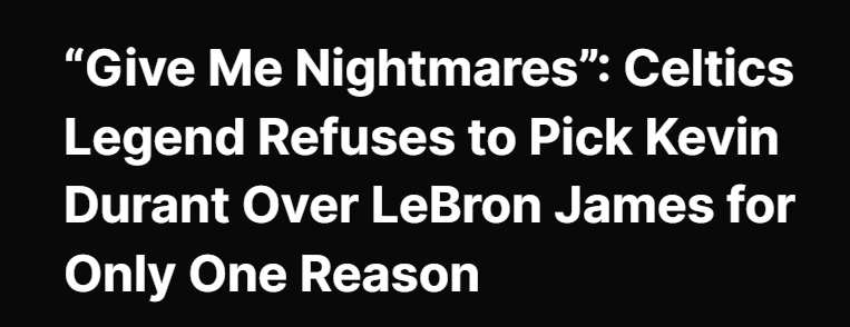 “若我存一火存一火,我需要这名球员证据得非常出色。我会选拔勒布朗(詹姆斯)来处分这个问题,我亲眼目睹了这少许。我看过一些我长久不会健忘的比赛,他让我仍然会作念恶梦,”皮尔斯说说念,“我可爱杜兰特,我知说念他在得分方面能作念什么。当我且归看波士顿的第六场比赛时,这是勒布朗的活命代表作。”
