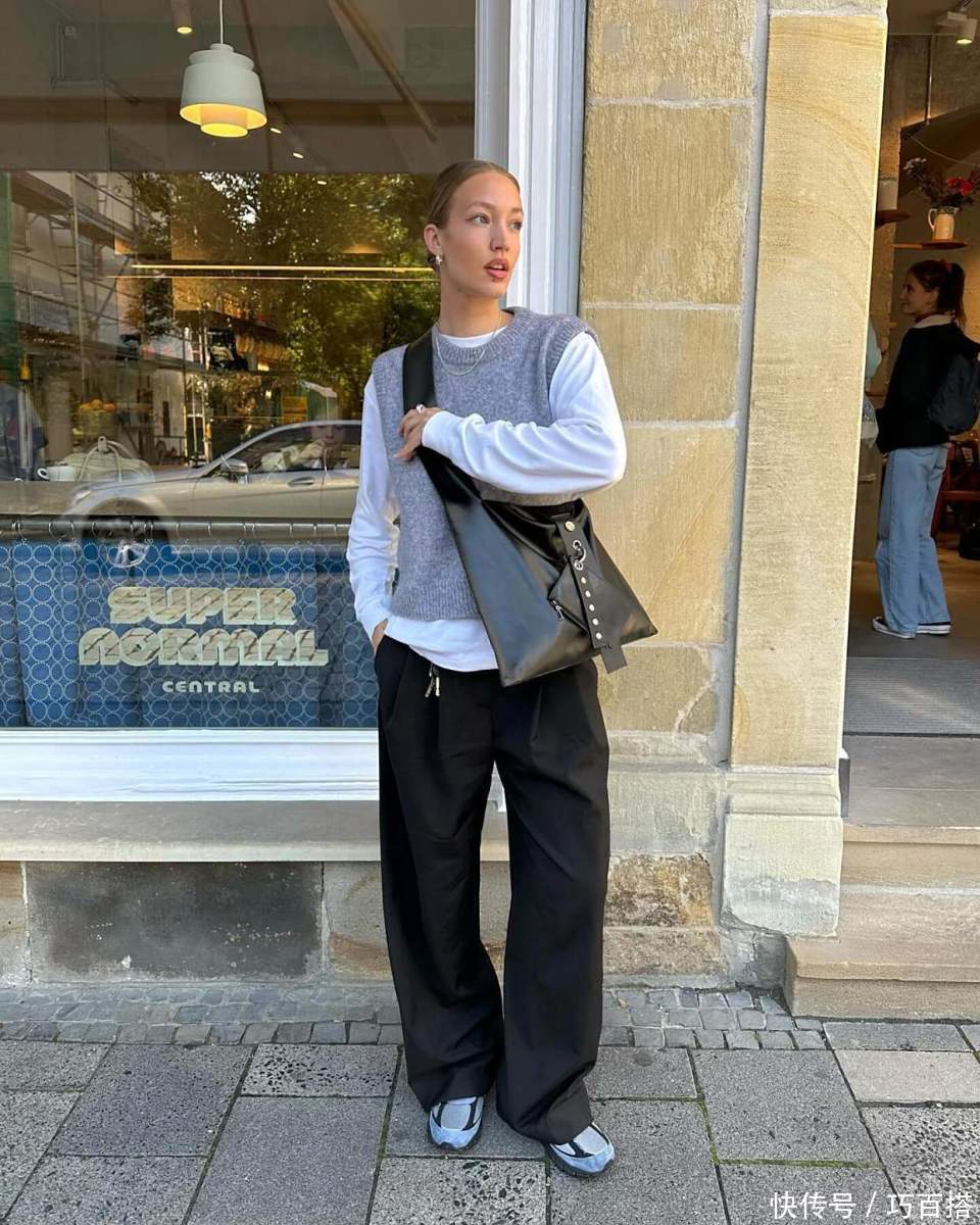 除了两件单品叠搭外,白色打底衫也救援三件单品叠搭,洋葱式穿法档次明确,室内室外好意思得毫泛泛止,秋天可以穿,冬天选拔也OK。