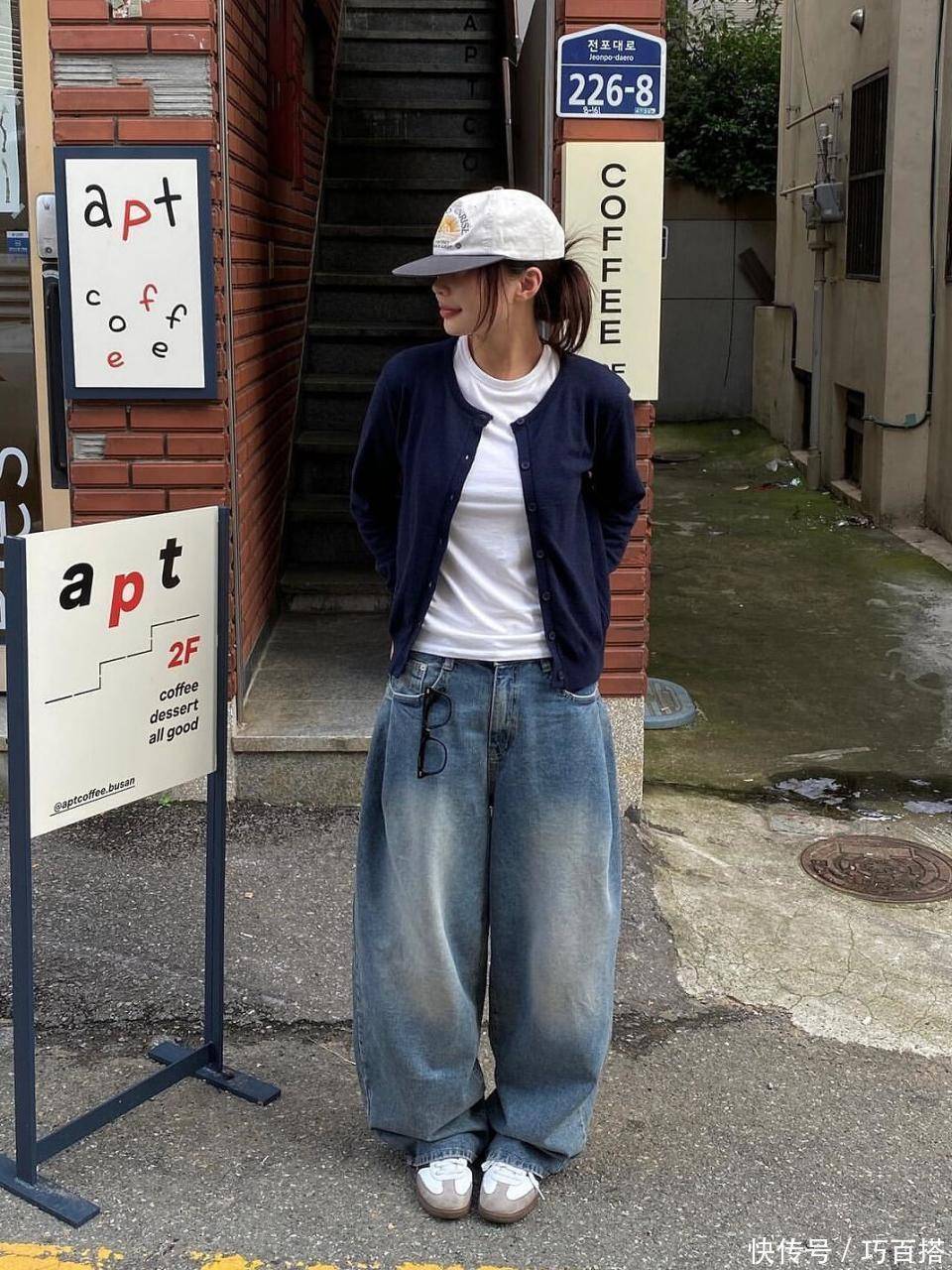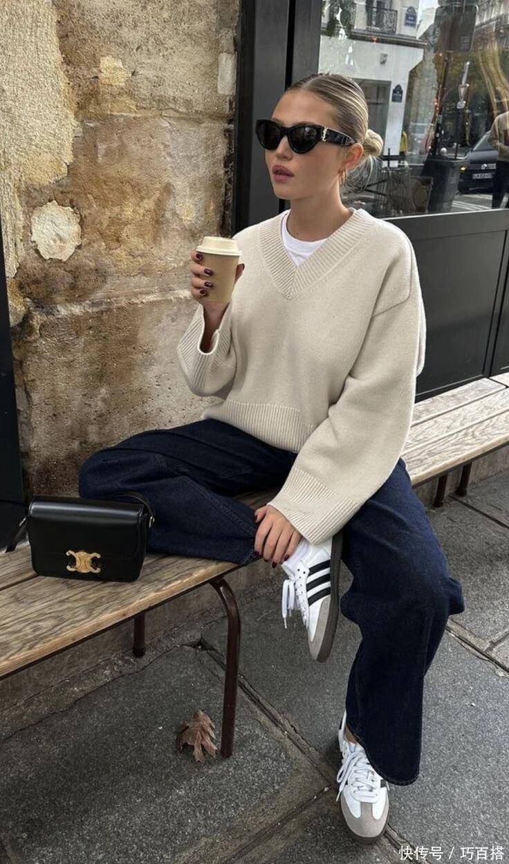 相较于套头款V领真挚毛衣,博主身上这类真挚开衫也能与白色T恤搭配,自行转机衣领开合大小,非常东说念主性化。